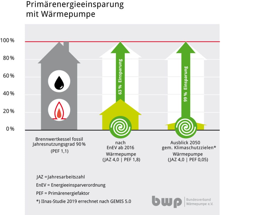 Eine moderne Wärmepumpe ersetzt fossile Brennstoffe durch umweltfreundliche, erneuerbare Energie aus der Umgebungsluft, dem Erdreich oder dem Grundwasser. Kombiniert mit Ökostrom lassen sich die Emissionen nahezu auf null senken – und das dauerhaft.